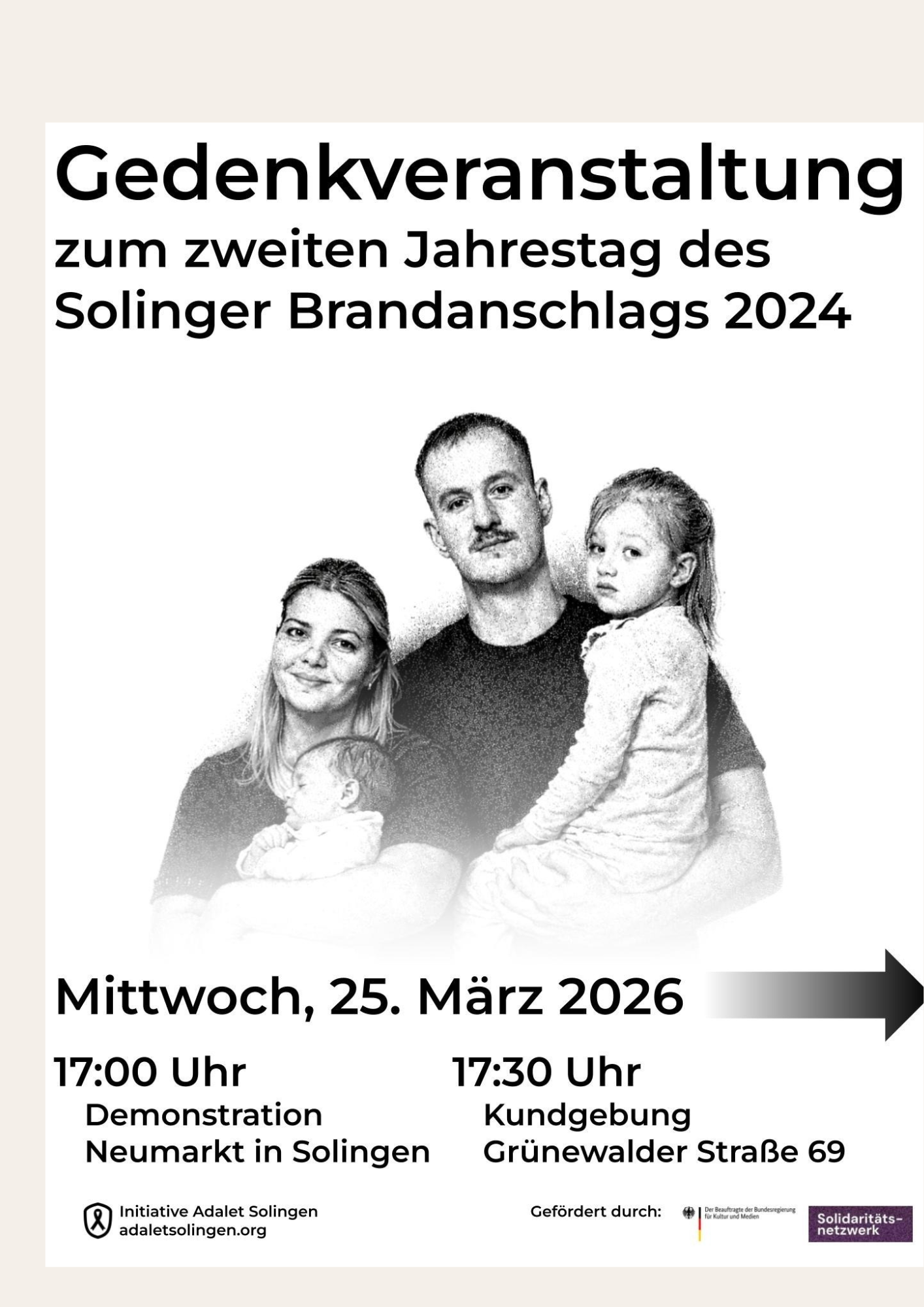 Gedenkveranstaltungen, Veranstaltungen & Gedenken Gedenkveranstaltung: Zweiter Jahrestag des Solinger Brandanschlags 2024 3. März 2026 von anna 0 Comments